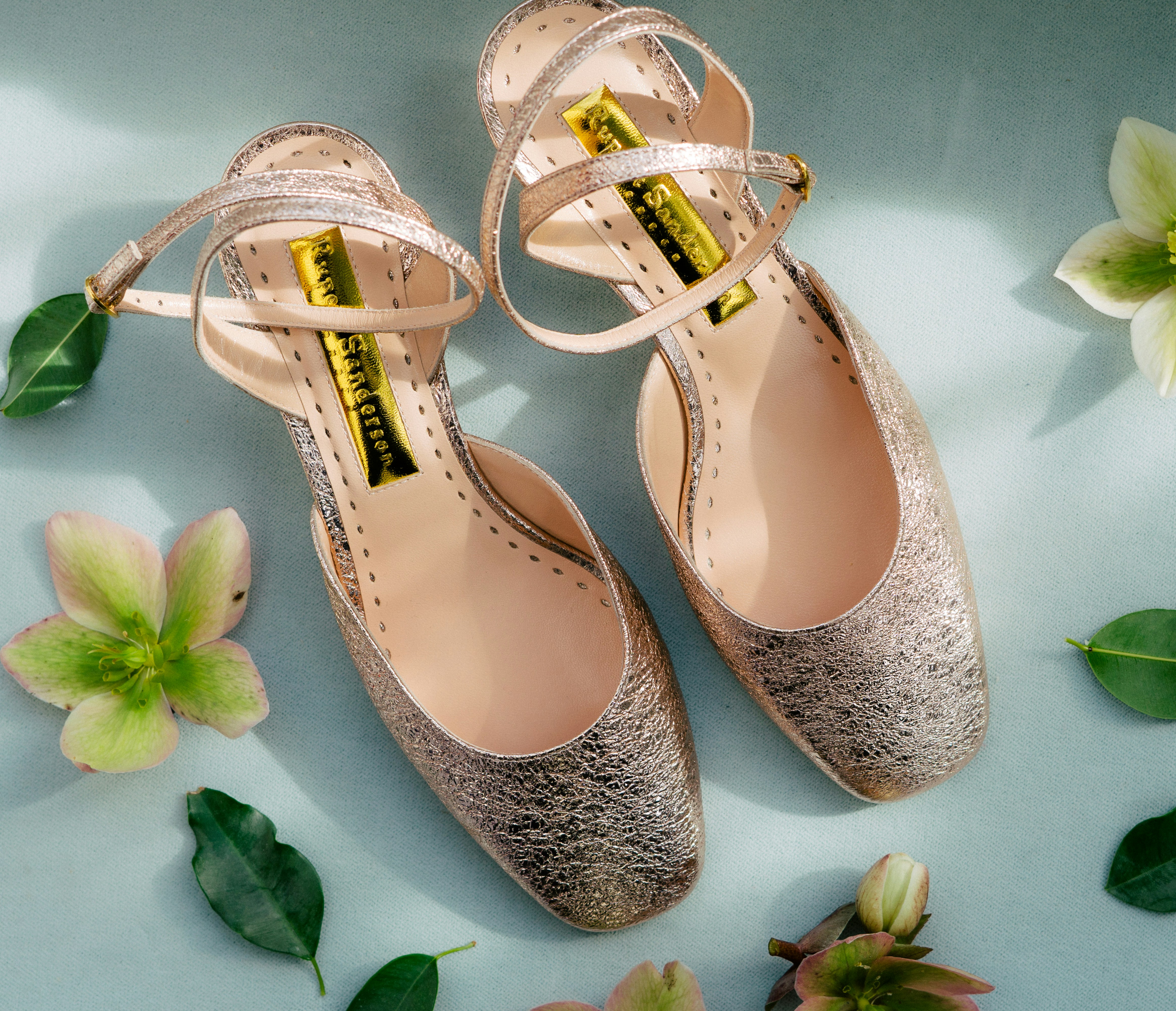 Rose Gold Sequin Flats: For a more comfortable option, these sequin flats are perfect for dancing the night away. The subtle shimmer adds a touch of romance to your wedding day look.